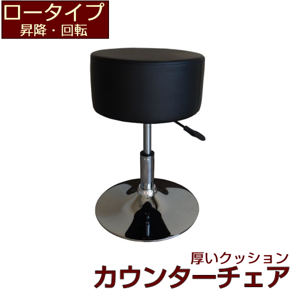 カウンターチェア ロータイプ 黒 丸椅子 昇降 カウンターチェアー バーチェアー 回転チェアー ハイチェアー ブラック 低め