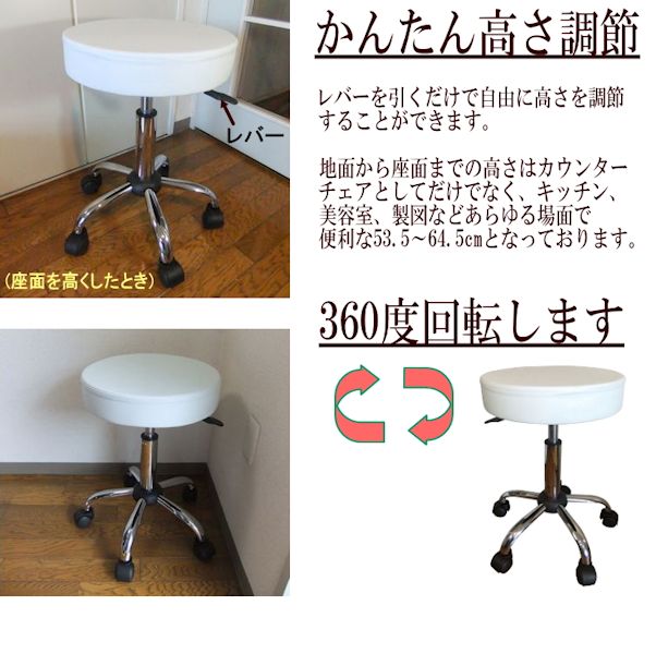 - キャスター付 カウンターチェアー (白) バーチェア 回転椅子 キャスター付き キャスターチェア 椅子 イス 昇降 カウンターチェア バーチェアー 回転チェアー ハイチェアー ホワイト 丸椅子